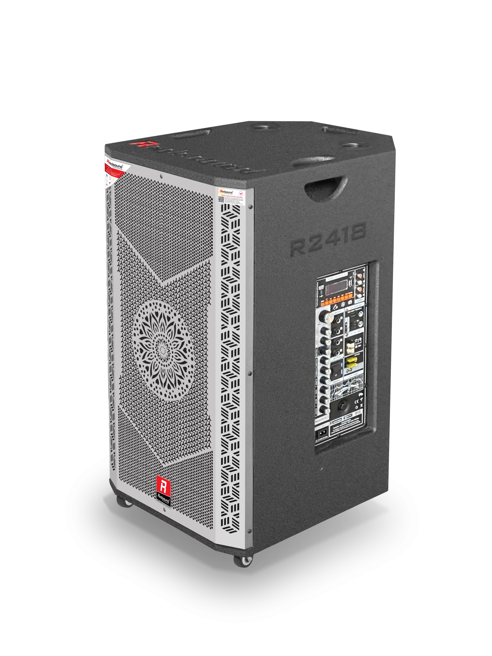 R2416 có kích thước 42 x 48 x 78cm và trọng lượng chỉ 37kg, được trang bị 4 bánh xe linh hoạt giúp bạn dễ dàng di chuyển trên nhiều địa hình. Phần thùng loa được làm từ gỗ cao cấp, vừa đảm bảo độ bền bỉ, vừa tăng tính thẩm mỹ cho sản phẩm. Các chi tiết lưới kim loại không chỉ bảo vệ hệ thống loa bên trong mà còn mang lại vẻ ngoài mạnh mẽ, hiện đại.